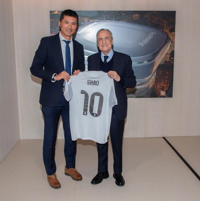 2月5日,皇马官方微博发布,欢迎中国男足主帅邵佳一到访。邵佳一与皇马主席弗洛伦蒂诺合影,并与平图斯进行交流。